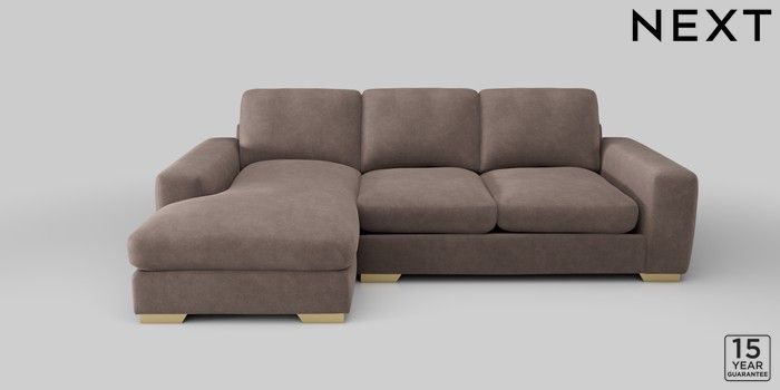 6.12.1 Buy Houghton Deep Relaxed Sit Medium Sofa Chaise - Left Hand Luxe Chenille Mink Brown Large Square Angle - Brushed Brass from the Next UK online shop Click here to use our accessible website