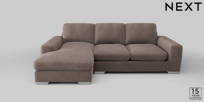 6.12.1 Buy Houghton Deep Relaxed Sit Medium Sofa Chaise - Left Hand Luxe Chenille Mink Brown Large Square Angle - Chrome Metal from the Next UK online shop Click here to use our accessible website