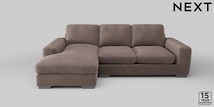 6.12.1 Buy Houghton Deep Relaxed Sit Medium Sofa Chaise - Left Hand Luxe Chenille Mink Brown Large Square Angle - Gunmetal from the Next UK online shop Click here to use our accessible website
