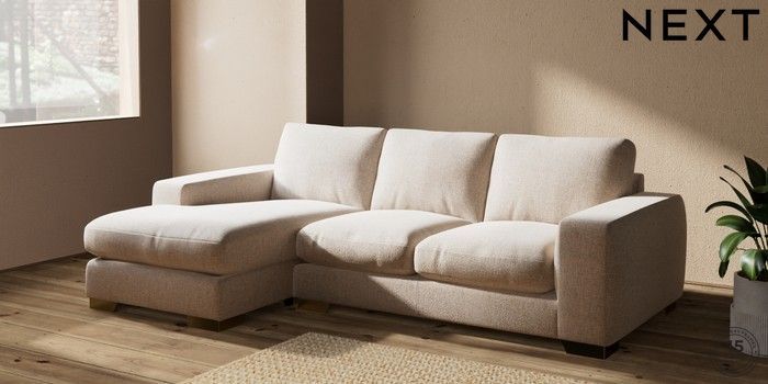7.2.6 Buy Houghton Deep Relaxed Sit Medium Sofa Chaise - Left Hand Multi Weave Mid Natural Large Square Angle - Brushed Brass from the Next UK online shop Click here to use our accessible website