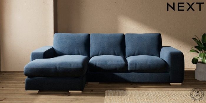 7.0.3 Buy Houghton Deep Relaxed Sit Medium Sofa Chaise - Left Hand Ripple Chenille Dark Blue Large Square Angle - Chrome Metal from the Next UK online shop Click here to use our accessible website