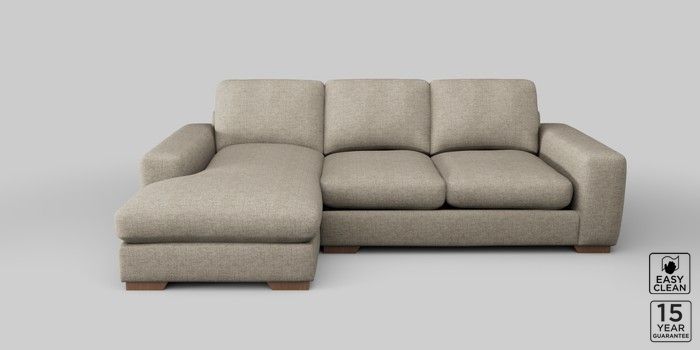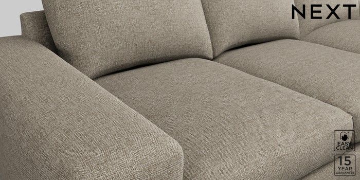 6.12.1 Buy Houghton Deep Relaxed Sit Medium Sofa Chaise - Left Hand Woven Chenille Easy Clean Mid Natural Large Square Angle - Mid from the Next UK online shop Click here to use our accessible website