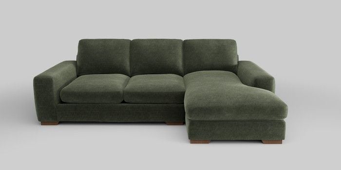 6.12.1 Buy Houghton Deep Relaxed Sit Medium Sofa Chaise - Right Hand Luxe Chenille Mid Green Large Square Angle - Mid from the Next UK online shop Click here to use our accessible website