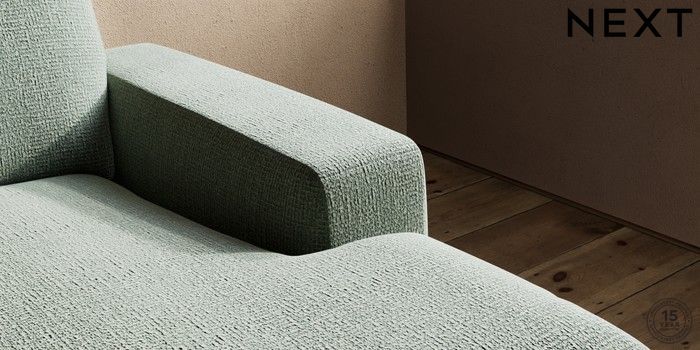 6.12.13 Buy Houghton Deep Relaxed Sit Medium Sofa Chaise - Right Hand Chunky Texture Mid Forest Green Large Square Angle - Dark from the Next UK online shop Click here to use our accessible website