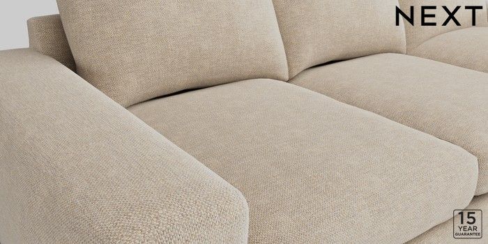 6.12.1 Buy Houghton Deep Relaxed Sit Medium Sofa Chaise - Right Hand Chunky Weave Cream Large Square Angle - Mid from the Next UK online shop Click here to use our accessible website