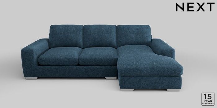 6.12.1 Buy Houghton Deep Relaxed Sit Medium Sofa Chaise - Right Hand Cotswold Chenille Dark Blue Large Square Angle - Chrome Metal from the Next UK online shop Click here to use our accessible website