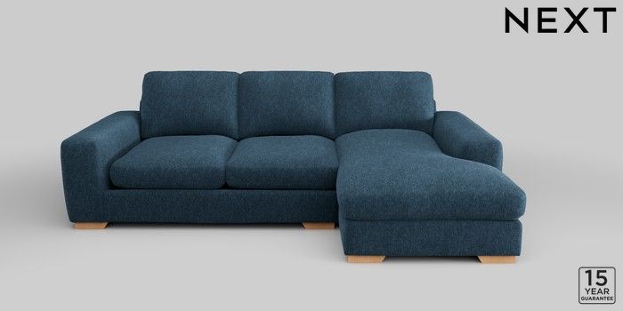 6.12.1 Buy Houghton Deep Relaxed Sit Medium Sofa Chaise - Right Hand Cotswold Chenille Dark Blue Large Square Angle - Light from the Next UK online shop Click here to use our accessible website