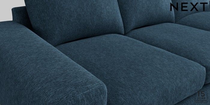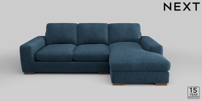 6.12.1 Buy Houghton Deep Relaxed Sit Medium Sofa Chaise - Right Hand Cotswold Chenille Dark Blue Large Square Angle - Mid from the Next UK online shop Click here to use our accessible website