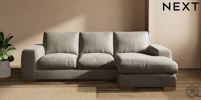 7.0.3 Buy Houghton Deep Relaxed Sit Medium Sofa Chaise - Right Hand Cotswold Chenille Mid Mink Brown Large Square Angle - Brushed Brass from the Next UK online shop Click here to use our accessible website