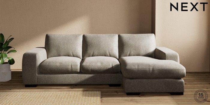 7.0.3 Buy Houghton Deep Relaxed Sit Medium Sofa Chaise - Right Hand Cotswold Chenille Mid Mink Brown Large Square Angle - Dark from the Next UK online shop Click here to use our accessible website