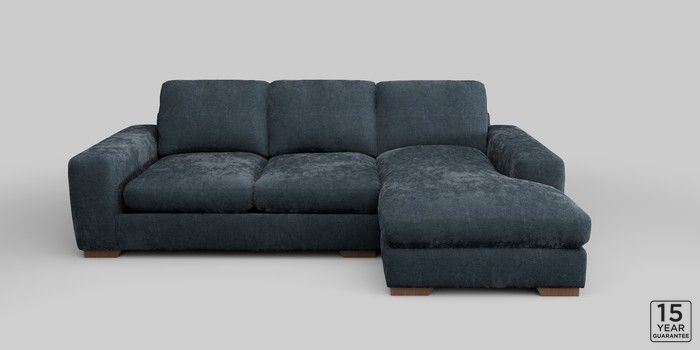 6.12.1 Buy Houghton Deep Relaxed Sit Medium Sofa Chaise - Right Hand Distressed Velour Midnight Blue Large Square Angle - Mid from the Next UK online shop Click here to use our accessible website