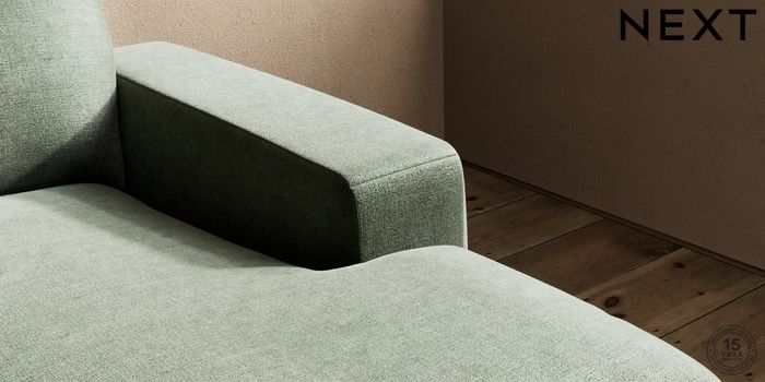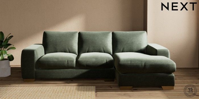 7.0.3 Buy Houghton Deep Relaxed Sit Medium Sofa Chaise - Right Hand Luxe Chenille Mid Green Large Square Angle - Brushed Brass from the Next UK online shop Click here to use our accessible website