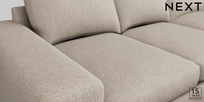 6.12.1 Buy Houghton Deep Relaxed Sit Medium Sofa Chaise - Right Hand Chunky Chenille Light Dove Large Square Angle - Mid from the Next UK online shop Click here to use our accessible website