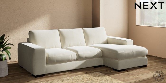 7.0.3 Buy Houghton Deep Relaxed Sit Medium Sofa Chaise - Right Hand Luxe Chenille Oyster Large Square Angle - Dark from the Next UK online shop Click here to use our accessible website