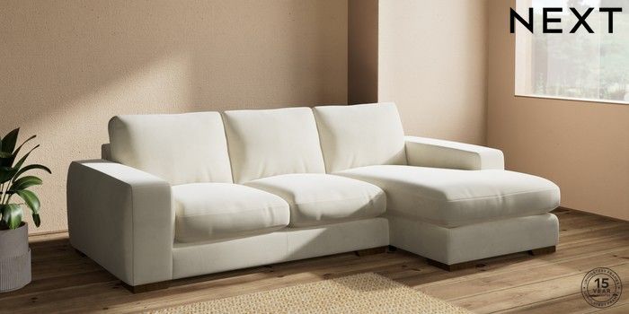 7.0.3 Buy Houghton Deep Relaxed Sit Medium Sofa Chaise - Right Hand Luxe Chenille Oyster Large Square Angle - Mid from the Next UK online shop Click here to use our accessible website