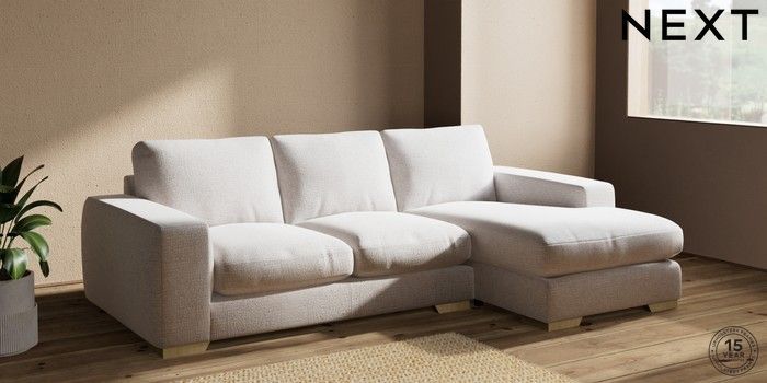 7.2.6 Buy Houghton Deep Relaxed Sit Medium Sofa Chaise - Right Hand Multi Weave Oyster Large Square Angle - Light from the Next UK online shop Click here to use our accessible website