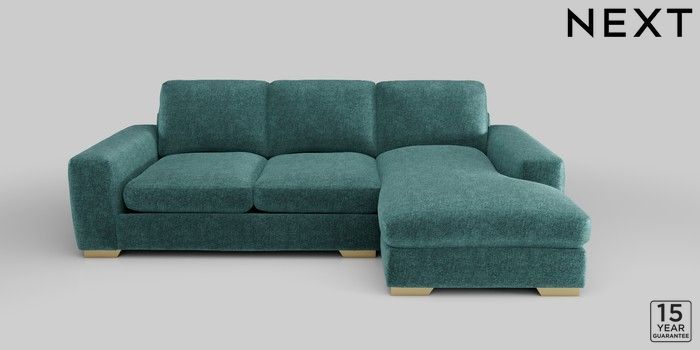 6.12.1 Buy Houghton Deep Relaxed Sit Medium Sofa Chaise - Right Hand Plush Chenille Dark Teal Green Large Square Angle - Brushed Brass from the Next UK online shop Click here to use our accessible website
