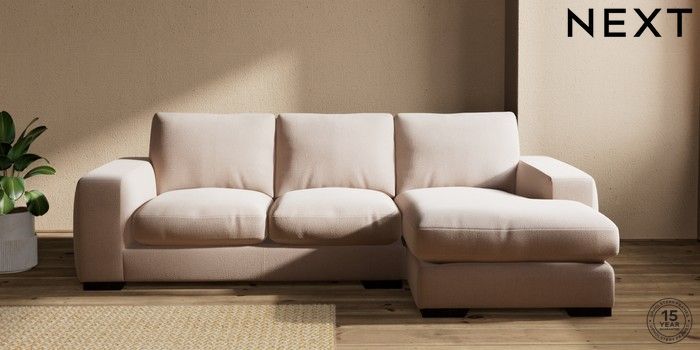 6.12.13 Buy Houghton Deep Relaxed Sit Medium Sofa Chaise - Right Hand Relaxed Linen Look Mid Natural Large Square Angle - Dark from the Next UK online shop Click here to use our accessible website