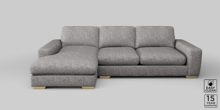 6.12.1 Buy Houghton Deep Relaxed Sit Medium Sofa Chaise - Right Hand Chunky Boucle Easy Clean Light Grey Large Square Angle - Brushed Brass from the Next UK online shop Click here to use our accessible website