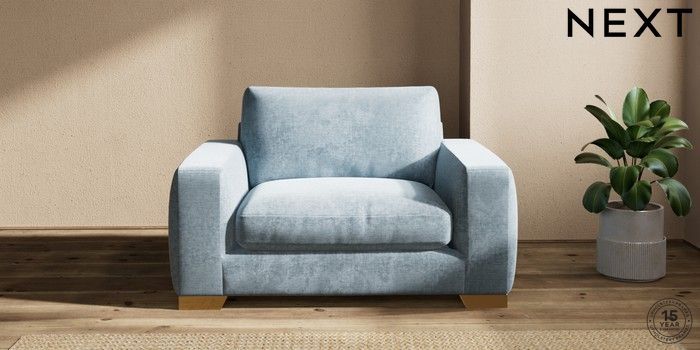 7.2.6 Buy Houghton Deep Relaxed Sit Snuggle Plush Chenille Light Blue Large Square Angle - Brushed Brass from the Next UK online shop Click here to use our accessible website