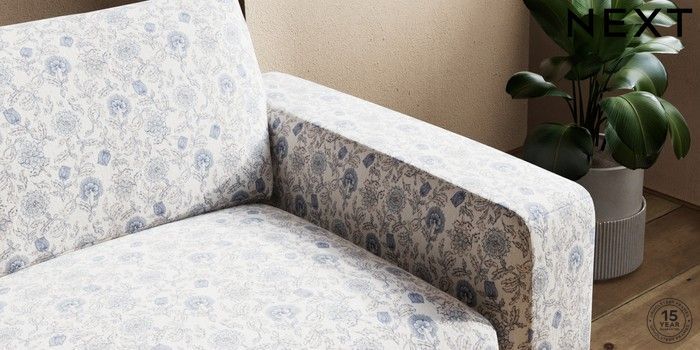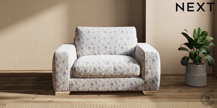 7.3.1 Buy Houghton Deep Relaxed Sit Snuggle Relaxed Linen Look Print Woodblock Floral Blue Large Square Angle - Chrome Metal from the Next UK online shop Click here to use our accessible website