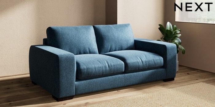 6.12.1 Buy Houghton Deep Relaxed Sit Sofa Bed Cotswold Chenille Dark Blue Large Square Angle - Dark from the Next UK online shop Click here to use our accessible website
