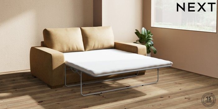 7.0.3 Buy Houghton Deep Relaxed Sit Sofa Bed Luxe Chenille Honey Yellow Large Square Angle - Mid from the Next UK online shop Click here to use our accessible website