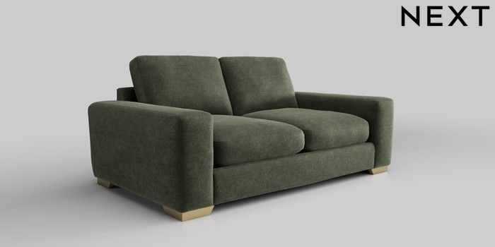 6.12.1 Buy Houghton Deep Relaxed Sit Sofa Bed Luxe Chenille Mid Green Large Square Angle - Brushed Brass from the Next UK online shop Click here to use our accessible website