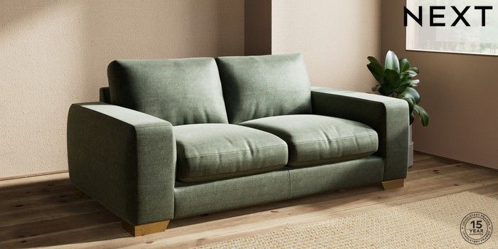 7.0.3 Buy Houghton Deep Relaxed Sit Sofa Bed Luxe Chenille Mid Green Large Square Angle - Brushed Brass from the Next UK online shop Click here to use our accessible website