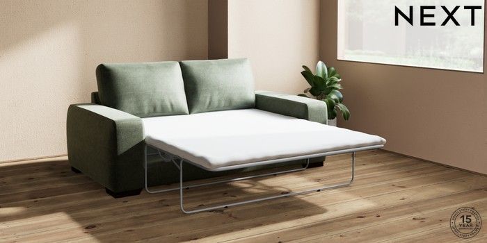 7.0.3 Buy Houghton Deep Relaxed Sit Sofa Bed Luxe Chenille Mid Green Large Square Angle - Dark from the Next UK online shop Click here to use our accessible website