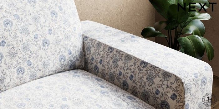 7.3.1 Buy Houghton Deep Relaxed Sit Sofa Bed Relaxed Linen Look Print Woodblock Floral Blue Large Square Angle - Light from the Next UK online shop Click here to use our accessible website