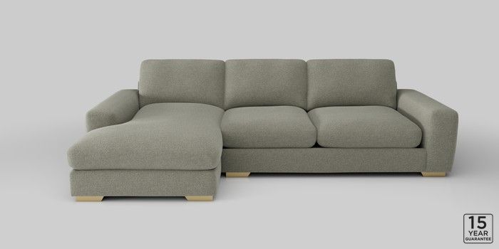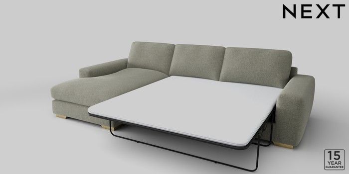 6.12.1 Buy Houghton Deep Relaxed Sit Sofa Chaise Bed - Left Hand Chunky Marl Light Olive Green Large Square Angle - Brushed Brass from the Next UK online shop Click here to use our accessible website