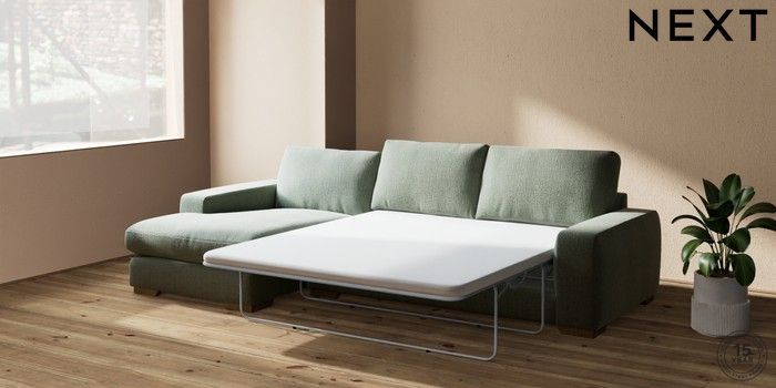 7.2.5 Buy Houghton Deep Relaxed Sit Sofa Chaise Bed - Left Hand Chunky Texture Mid Forest Green Large Square Angle - Mid from the Next UK online shop Click here to use our accessible website