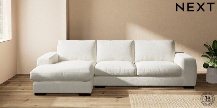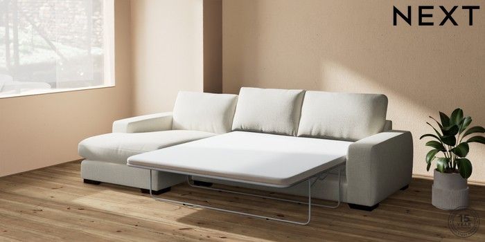 6.12.13 Buy Houghton Deep Relaxed Sit Sofa Chaise Bed - Left Hand Chunky Texture Oyster Large Square Angle - Dark from the Next UK online shop Click here to use our accessible website