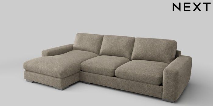 6.12.1 Buy Houghton Deep Relaxed Sit Sofa Chaise Bed - Left Hand Cotswold Chenille Mid Mink Brown Large Square Angle - Gunmetal from the Next UK online shop Click here to use our accessible website