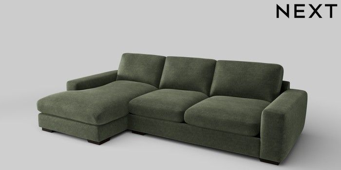 6.12.1 Buy Houghton Deep Relaxed Sit Sofa Chaise Bed - Left Hand Luxe Chenille Mid Green Large Square Angle - Dark from the Next UK online shop Click here to use our accessible website