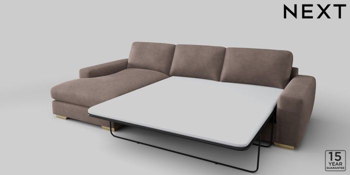 6.12.1 Buy Houghton Deep Relaxed Sit Sofa Chaise Bed - Left Hand Luxe Chenille Mink Brown Large Square Angle - Brushed Brass from the Next UK online shop Click here to use our accessible website