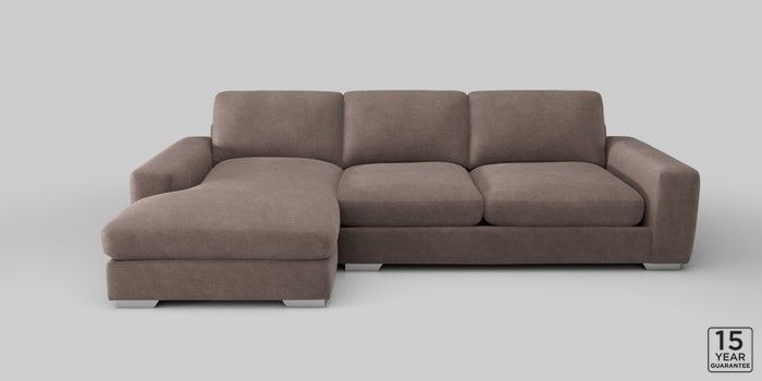 6.12.1 Buy Houghton Deep Relaxed Sit Sofa Chaise Bed - Left Hand Luxe Chenille Mink Brown Large Square Angle - Chrome Metal from the Next UK online shop Click here to use our accessible website