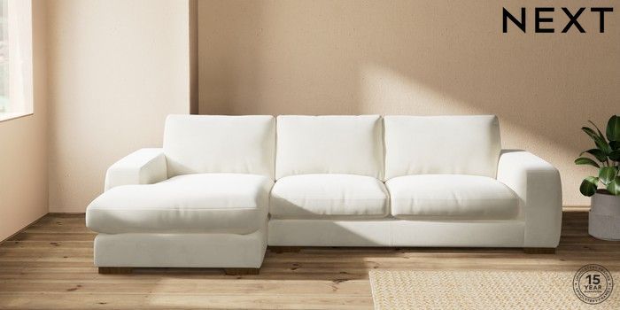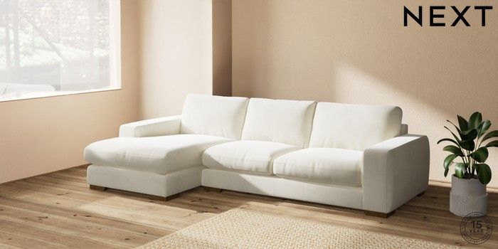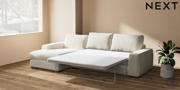 7.0.3 Buy Houghton Deep Relaxed Sit Sofa Chaise Bed - Left Hand Luxe Chenille Oyster Large Square Angle - Mid from the Next UK online shop Click here to use our accessible website