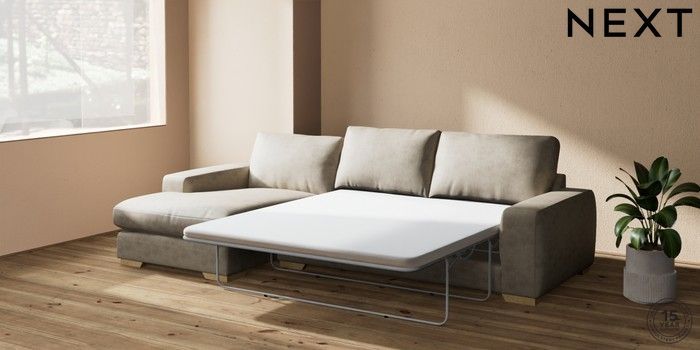 7.0.3 Buy Houghton Deep Relaxed Sit Sofa Chaise Bed - Left Hand Monza Faux Leather Easy Clean Mink Brown Large Square Angle - Light from the Next UK online shop Click here to use our accessible website