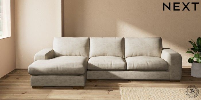 7.0.3 Buy Houghton Deep Relaxed Sit Sofa Chaise Bed - Left Hand Monza Faux Leather Easy Clean Mink Brown Large Square Angle - Mid from the Next UK online shop Click here to use our accessible website