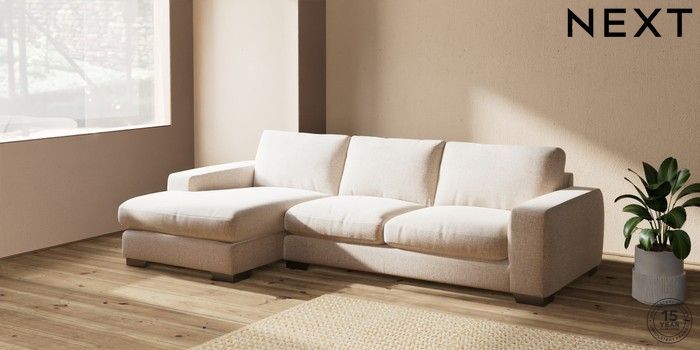 7.2.6 Buy Houghton Deep Relaxed Sit Sofa Chaise Bed - Left Hand Multi Weave Mid Natural Large Square Angle - Gunmetal from the Next UK online shop Click here to use our accessible website
