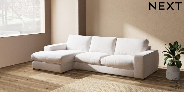 7.2.6 Buy Houghton Deep Relaxed Sit Sofa Chaise Bed - Left Hand Multi Weave Oyster Large Square Angle - Mid from the Next UK online shop Click here to use our accessible website