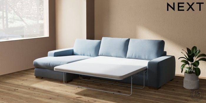 6.12.13 Buy Houghton Deep Relaxed Sit Sofa Chaise Bed - Left Hand Relaxed Linen Look Mid Blue Large Square Angle - Mid from the Next UK online shop Click here to use our accessible website