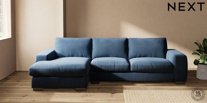 7.0.3 Buy Houghton Deep Relaxed Sit Sofa Chaise Bed - Left Hand Ripple Chenille Dark Blue Large Square Angle - Gunmetal from the Next UK online shop Click here to use our accessible website