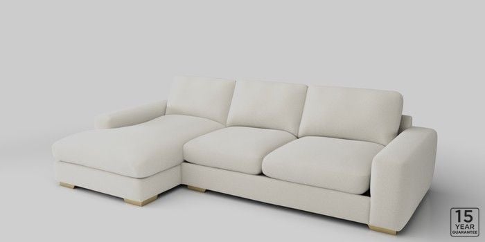 6.12.1 Buy Houghton Deep Relaxed Sit Sofa Chaise Bed - Left Hand Ripple Chenille Oyster Large Square Angle - Brushed Brass from the Next UK online shop Click here to use our accessible website