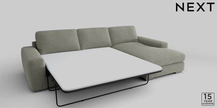 6.12.1 Buy Houghton Deep Relaxed Sit Sofa Chaise Bed - Right Hand Chunky Marl Light Olive Green Large Square Angle - Gunmetal from the Next UK online shop Click here to use our accessible website