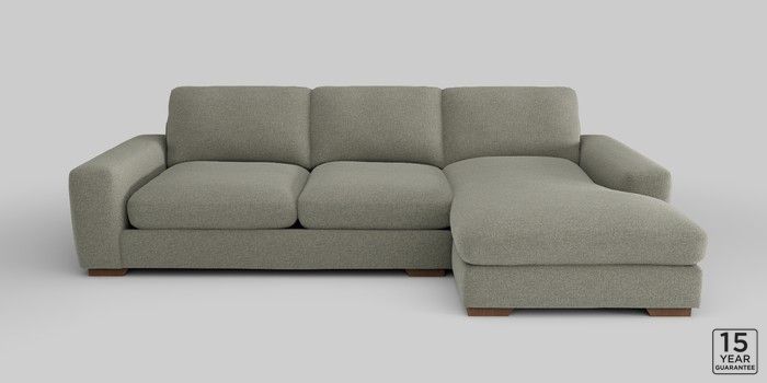 6.12.1 Buy Houghton Deep Relaxed Sit Sofa Chaise Bed - Right Hand Chunky Marl Light Olive Green Large Square Angle - Mid from the Next UK online shop Click here to use our accessible website