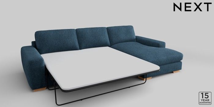 6.12.1 Buy Houghton Deep Relaxed Sit Sofa Chaise Bed - Right Hand Cotswold Chenille Dark Blue Large Square Angle - Light from the Next UK online shop Click here to use our accessible website