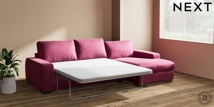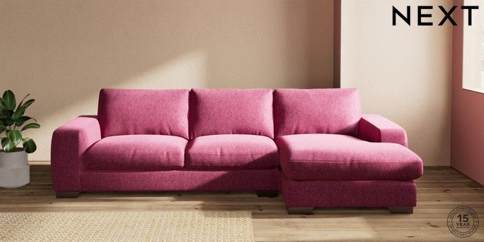6.12.13 Buy Houghton Deep Relaxed Sit Sofa Chaise Bed - Right Hand Cotswold Chenille Dark Raspberry Pink Large Square Angle - Gunmetal from the Next UK online shop Click here to use our accessible website